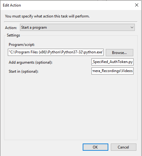 Below is an example of running it ad-hoc. The recordings (.mp4) will be stored in whichever directory you are running the .py file from, in my case, S:\Temp. Python is already in the PATH and is executable from any directory.